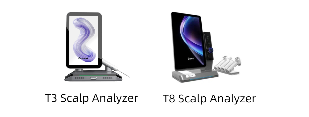 The T8 scalp analyzer goes beyond basic functions and has added three additional analytical indicators and two sub-dimensions.They are empty follicles and new hair.