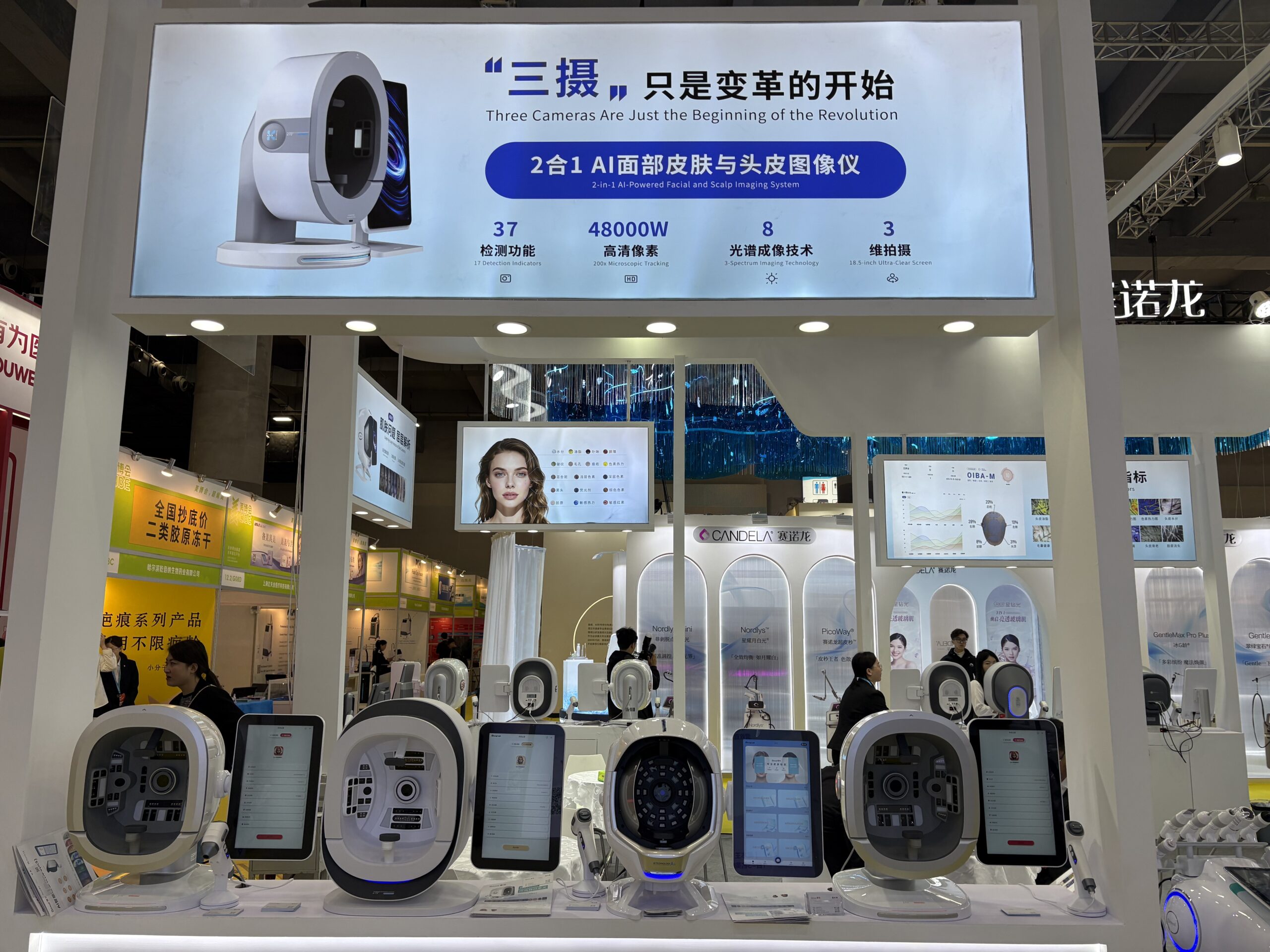 Triple-camera imaging technology is becoming an important industry trend. We have actively integrated this technology into our professional skin analysis solutions. As a result, the system delivers higher image clarity and captures more detailed skin information. It also helps professionals observe subtle skin conditions more accurately. This innovation attracted strong attention from visitors throughout the exhibition.
