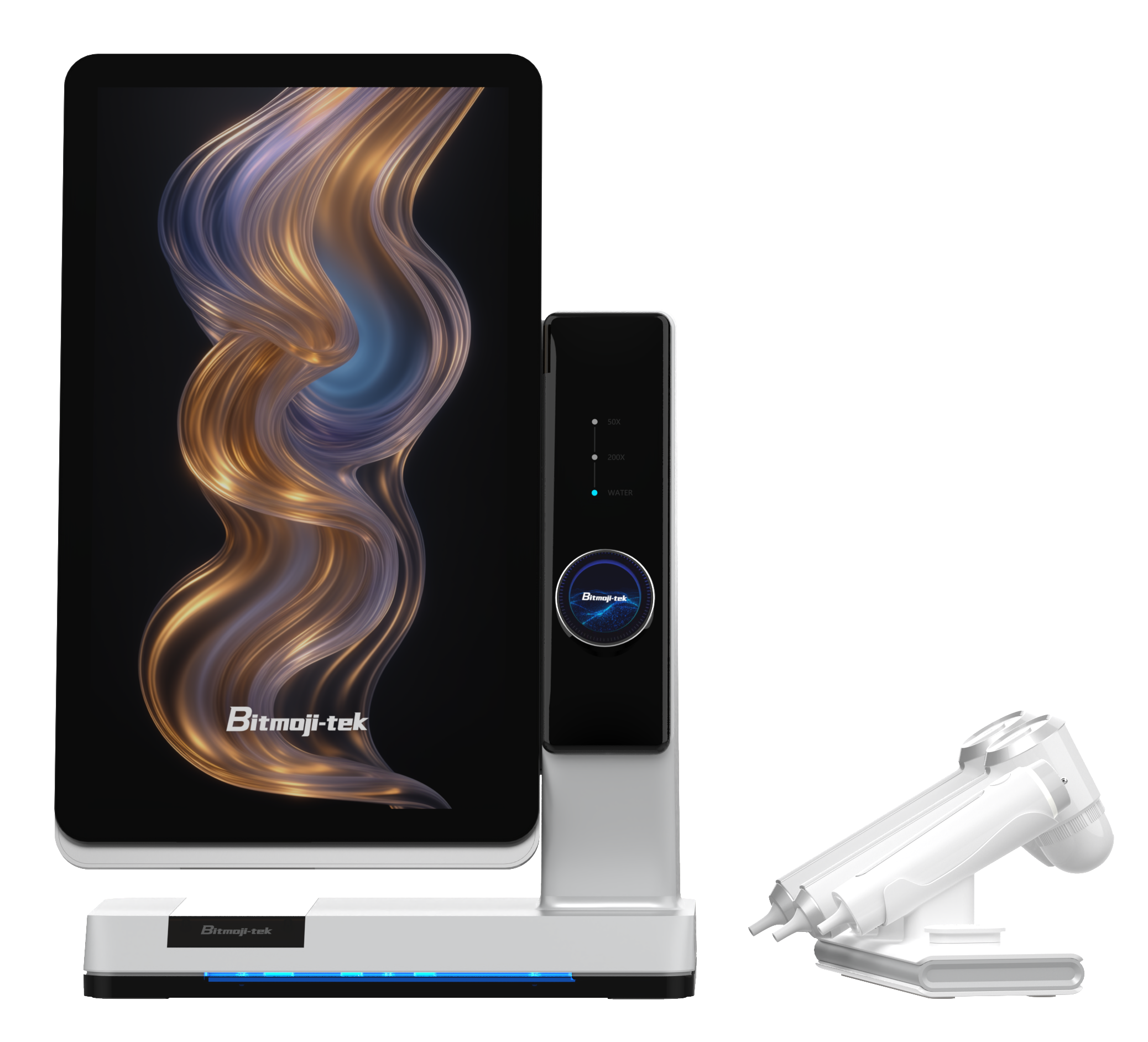 Bitmoji includes three detection handles for comprehensive scalp analysis: a 50x wide-angle lens, a 200x macro lens, and a moisture detector. They analyze scalp health thoroughly: