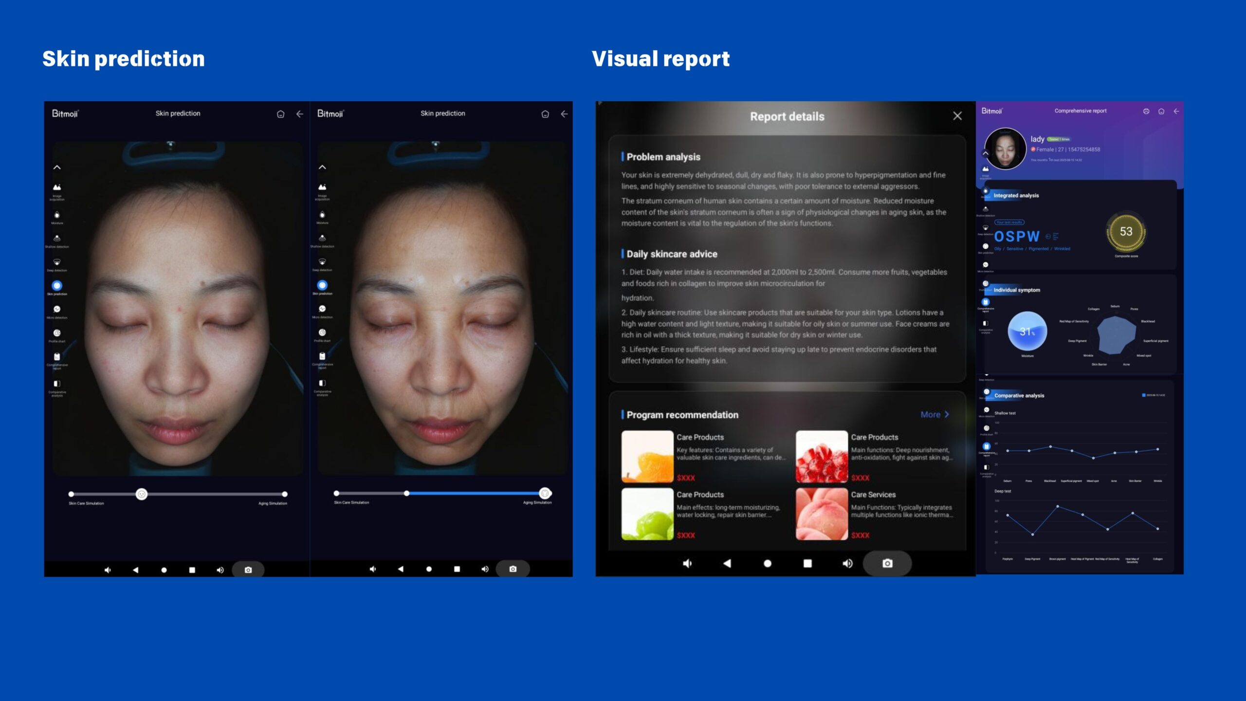Skin prediction: Advanced algorithms and big data analysis are applied to predict future skin change trends based on current conditions and historical data. This provides a scientific basis for proactive skincare strategies.